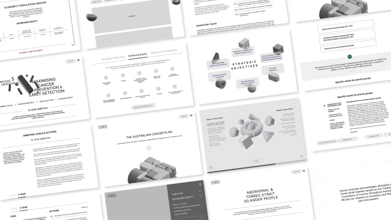 We were briefed to imagine the Plan as a digital-first experience rather than a dense report. As a result, the Plan went from a static document to a novel online experience for the ground-breaking national strategy which aims to achieve equity in cancer outcomes – especially for Aboriginal and Torres Strait Island people.