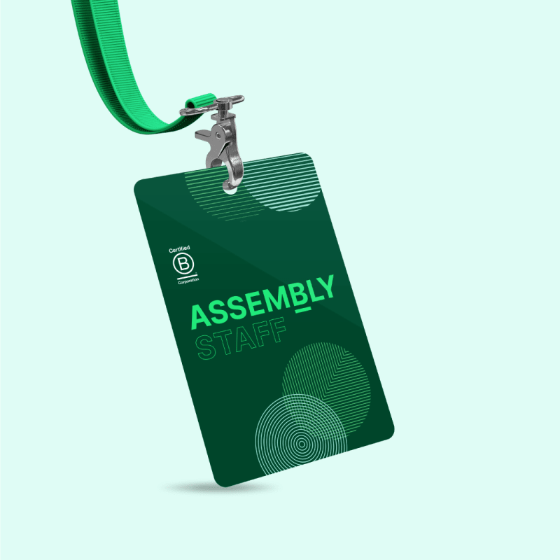 The basis of the event identity leveraged a bespoke suite of patterned circle graphic shapes to represent the diversity of the B Corp community and reference their iconic logo. Layering each unique shape creates interesting and unexpected intersections where they overlap, referencing the meeting of minds and ideas which the Assembly will facilitate. Underpinning the identity is a palette of greens that conjure the natural landscape upon which the event will take place, in the stunning Mornington Peninsula.