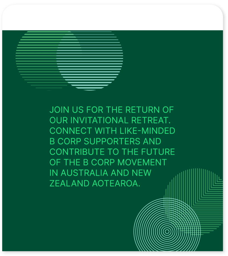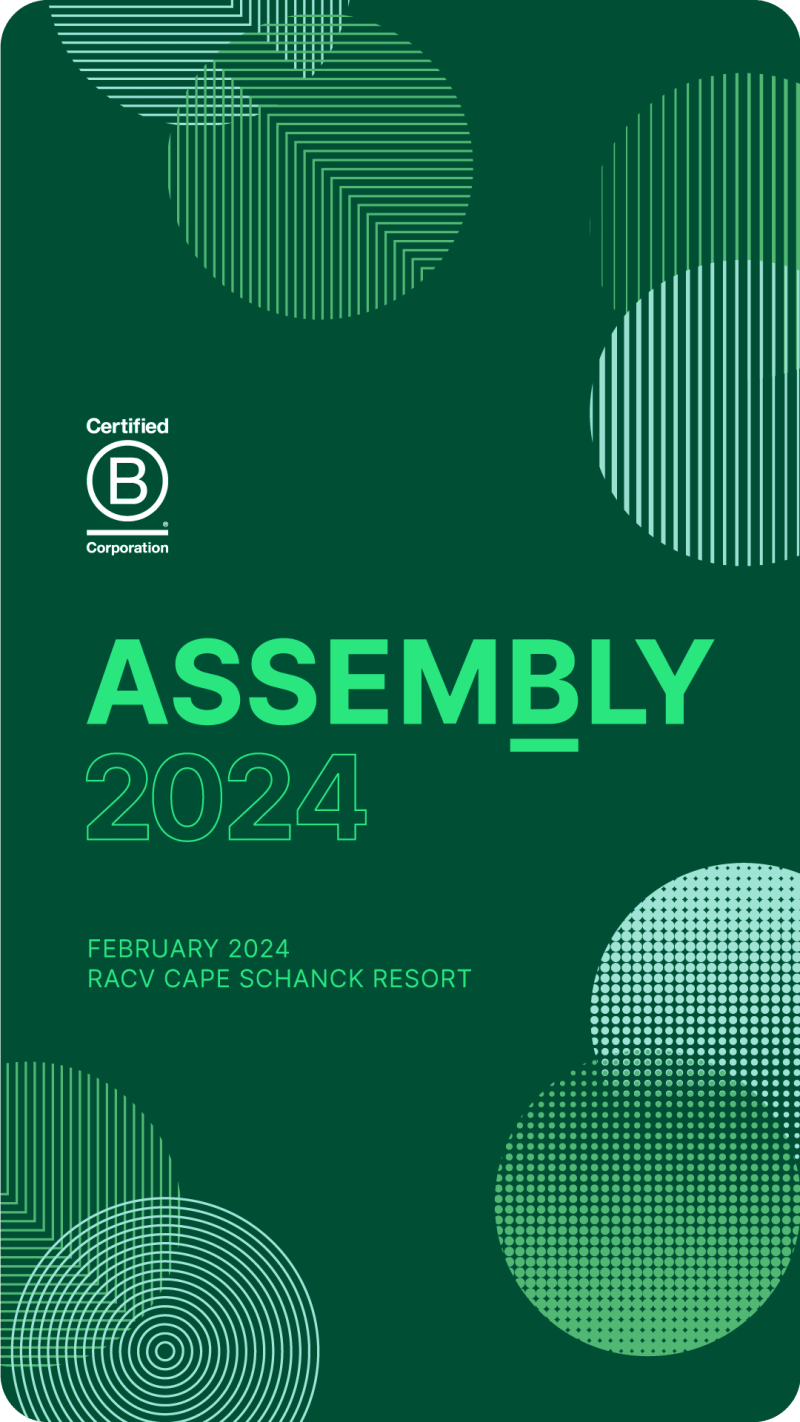 Following a 3 year covid hiatus, B Lab needed to reinvent their annual member meetup — especially given the huge jump in local B Corp memberships. We delivered a vibrant new brand and name that would encourage representatives of all local B Corps to come together and bolster the B Corp movement in the antipodes.