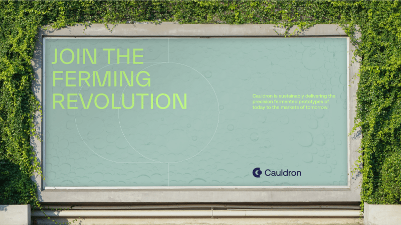 Industrial-scale production of precision fermented prototypes, by its very process, promises to produce larger quantities of food, feed and fibre while using less — land, water, time, risk — than traditional methods. So we refined Cauldron’s brand purpose as “Helping the world do more with less” to articulate their low-impact high-yield bio-acceleration technology.