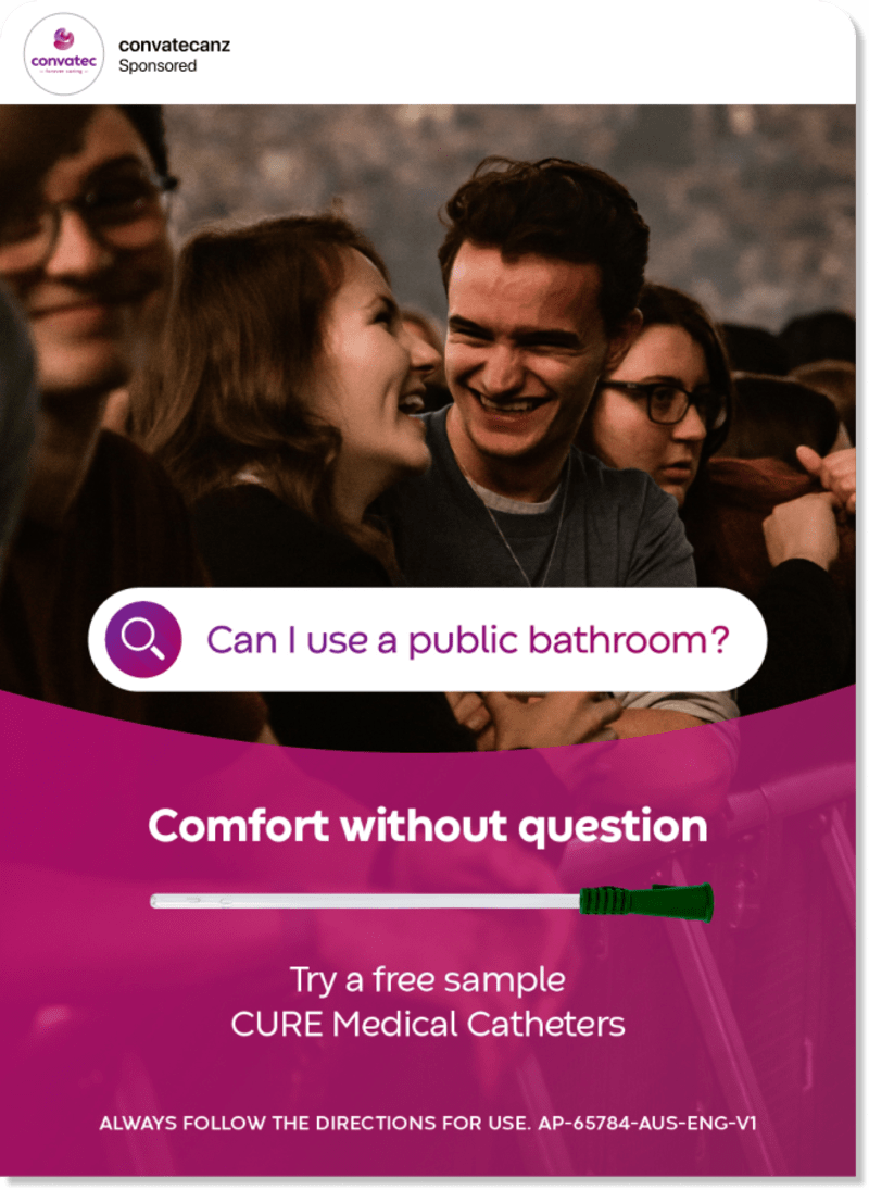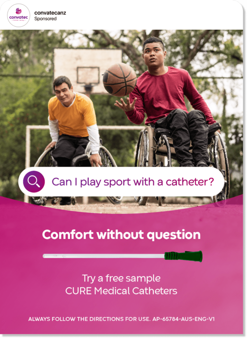 Already tried and tested in the US, Convatec was launching Cure Medical’s range of catheter solutions in Australia. While the podcast was spruiking the real stories of the continence community and their supporters, our advertising and content directly addressed the common concerns of Australians via search. We also answered the biggest question of all through a new product slogan, Comfort without Question.