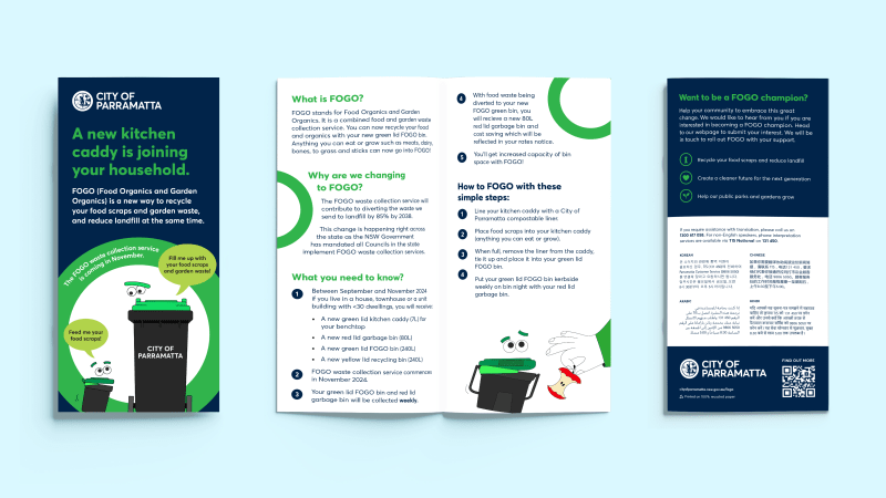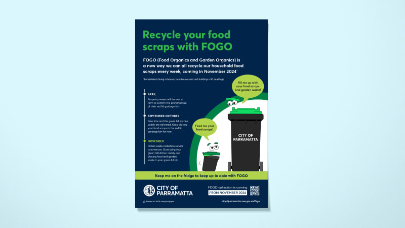 Food Organics and Garden Organics (FOGO) waste schemes are being rolled out around Australia by local councils and the City of Parramatta tapped us to roll out theirs. The program could save up to 85% of landfill waste in the area, turning the food and organics scraps into compost to feed local parks and gardens.