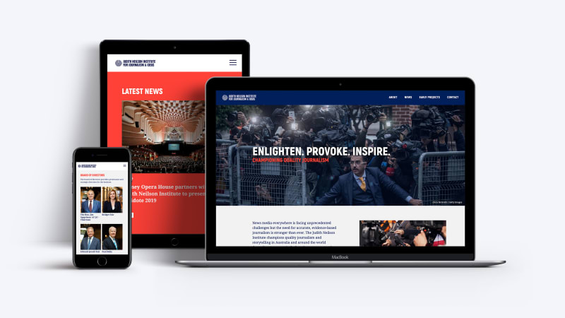 We designed and built a custom website in line with the launch of the Institute, unveiling our brand by featuring our strong colour palette and typography in a clean responsive layout. Accompanying this is a suite of branded collateral, including business cards, event programs, posters and stationery.