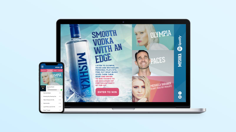 We created a website, conceptual art and digital assets for the campaign. We also developed a specific Spotify Player calling each user to join their favorite artist’s playlist. Accompanying this was a suite of digital assets to drive traction to Mishka Vodka’s website.