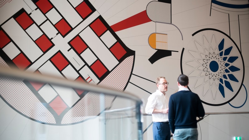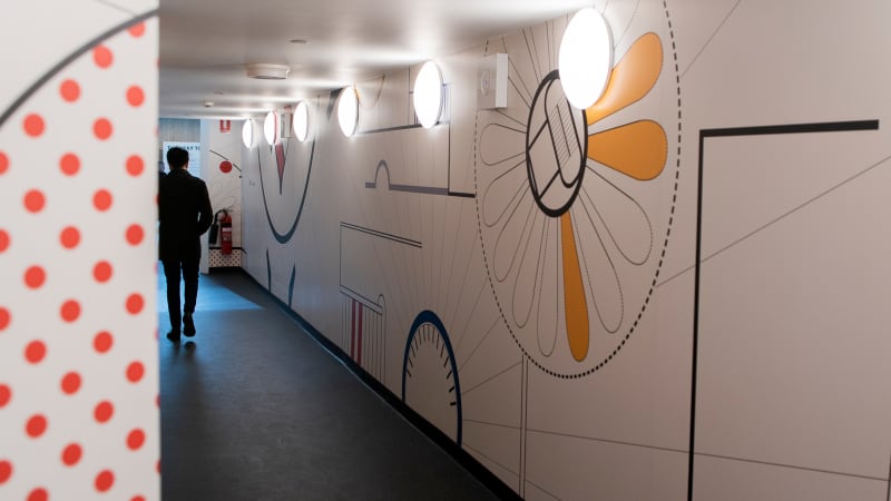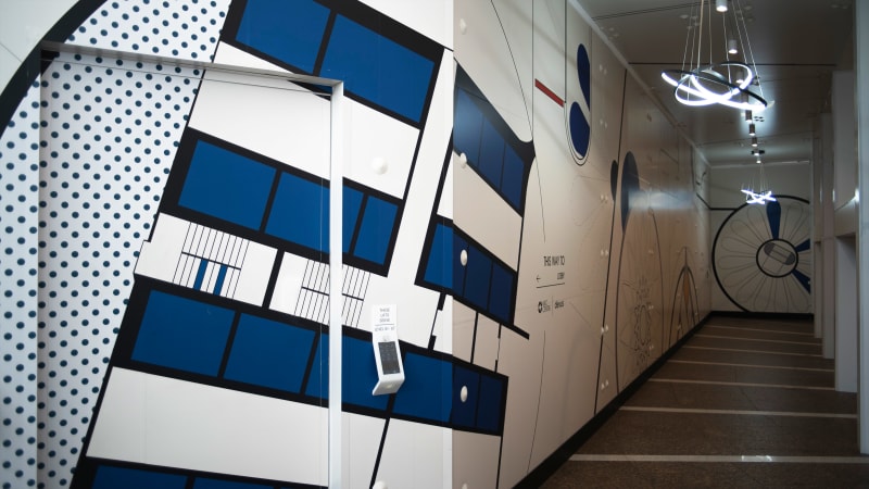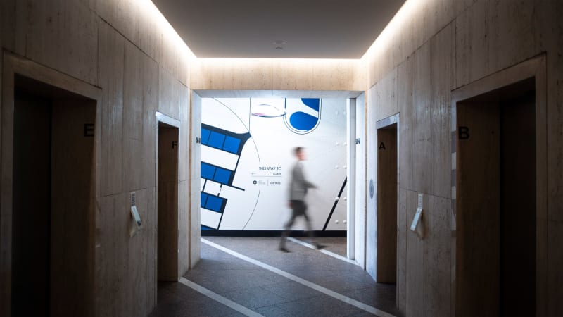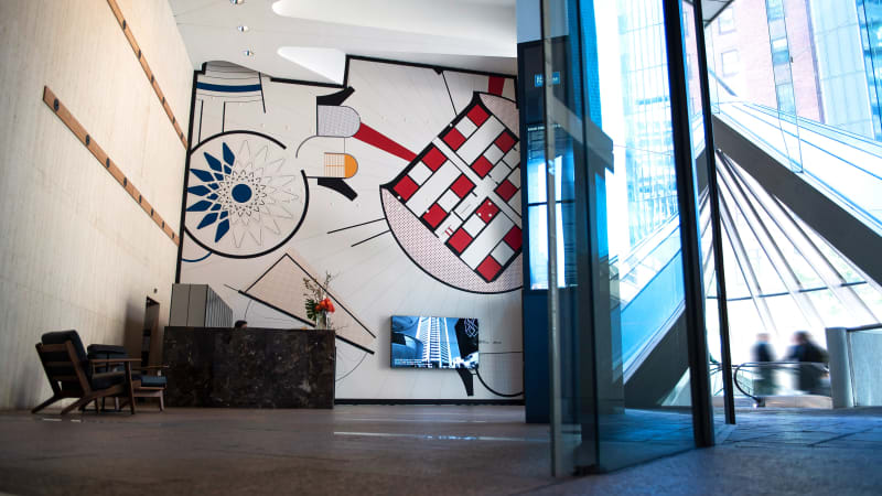We created modular panels of 510Sqm of original artwork that is to be rolled out over the course of 18 months. The internal artwork features a large digital screen combining 3D renders of the redevelopment celebrating the buildings history, future and occasionally mimic the artwork behind.