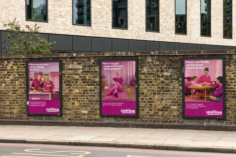 As one of Australia’s largest service providers, Uniting is woven into everyday life, yet brand awareness sat at just 6-8%. Not to mention that people didn’t realise the true breadth of their services, they were just seen as either “the church” or “that aged care provider”.