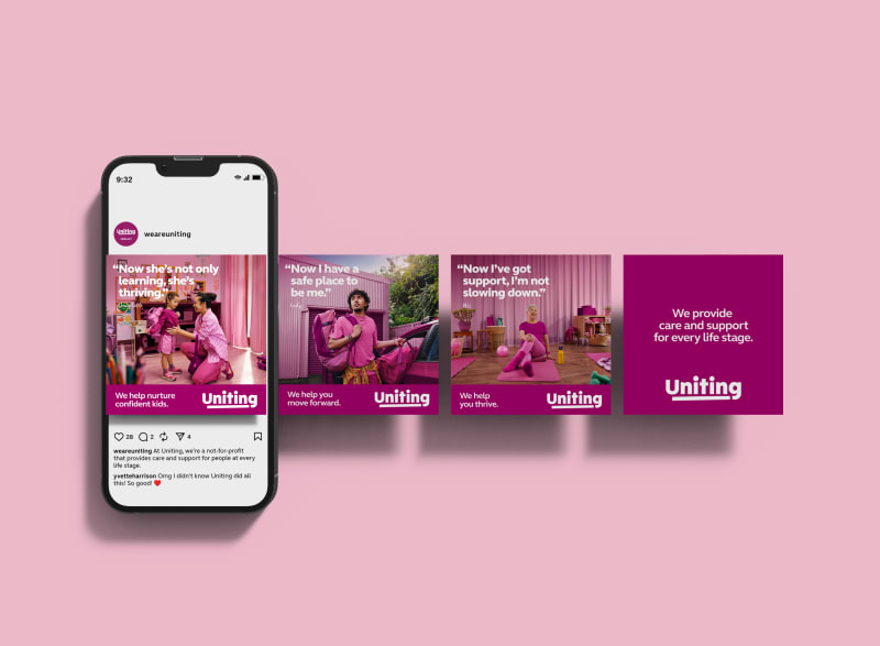Uniting helps over 100,000 Australians across NSW and ACT – every single day. But their wide range of life-changing services were often overlooked or misunderstood. We crafted a campaign that put their real impact on real people front and centre. By harnessing genuine stories and Uniting’s signature Lilly Pilly colour, we showed that Uniting can give you the skills and support to experience change you can feel.